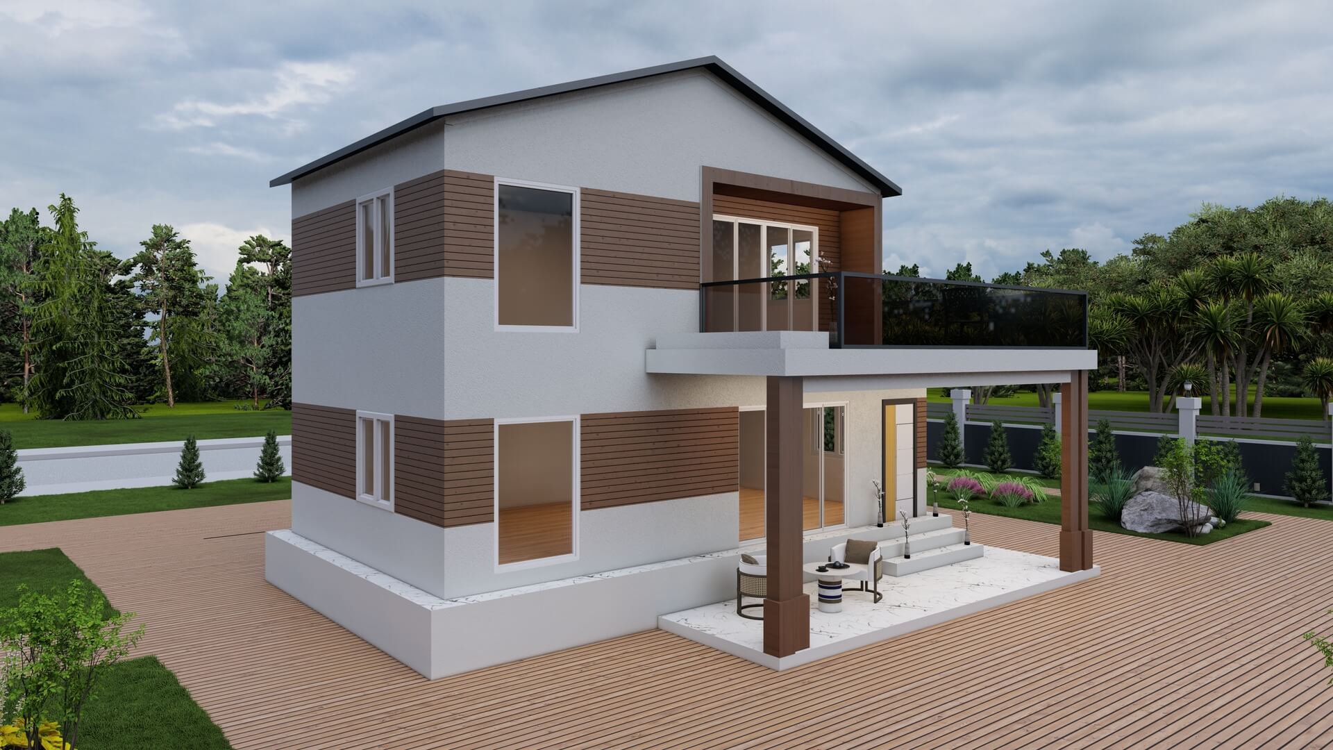 130 m²’lik bu çelik ev modeli, modern yaşam ihtiyaçları düşünülerek tasarlanmış geniş ve ferah bir aile evidir. Zemin katta yer alan geniş salon, mutfak ve ortak yaşam alanları, aile bireylerinin birlikte keyifli vakit geçirebileceği rahat bir ortam sunar. Büyük cam yüzeyler, iç mekânın gün ışığıyla doğal olarak aydınlanmasını sağlayarak sıcak ve davetkâr bir atmosfer oluşturur. Dış cephede kullanılan modern kaplama detayları ise estetik ve şık bir görünüm kazandırır. Ayrıca veranda veya teras alanı, açık havada dinlenme ve misafir ağırlama için ideal bir kullanım sunar.